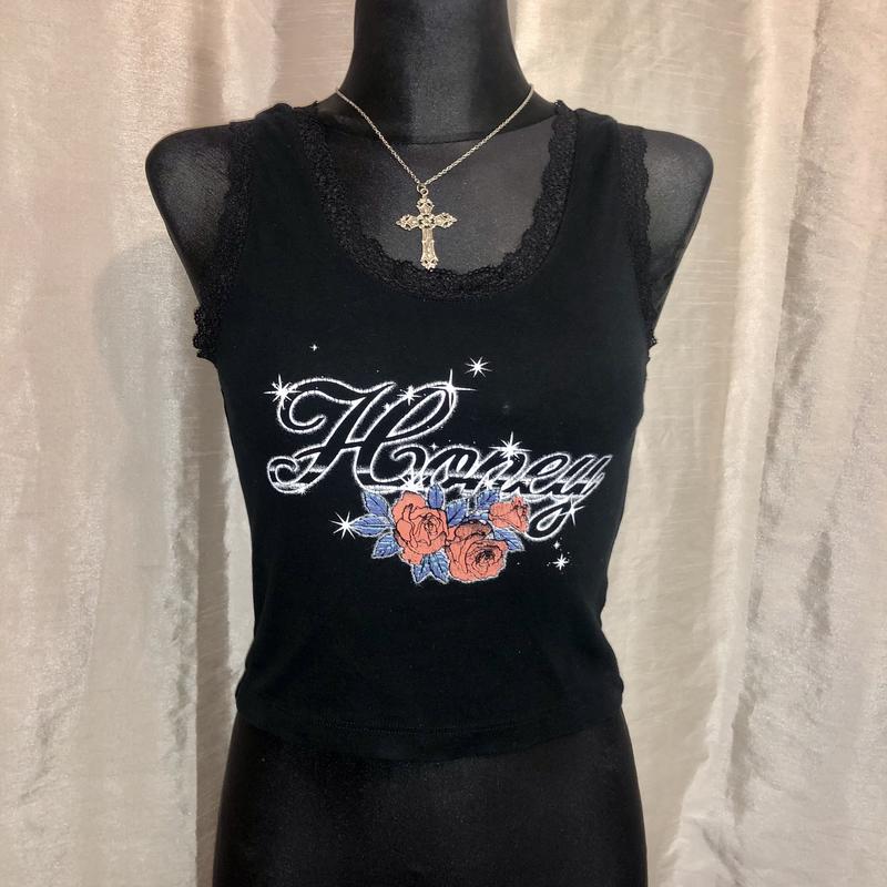 винтажная майка honey urban outfitters vintage 2000s y2k🖤 размер m материал коттон принт немного сколот, видно на фото замеры: полуобхват груди 36см, тянется до 62см длина от спинки 37см также смотрите другие мои объявления💋💖