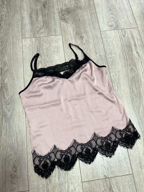 Продается нежная розовая майка на тонких бретельках с красивым черным кружевом. Материал – приятный на ощупь атлас, придающий изделию элегантности. Идеально подходит для стильного повседневного образа или как часть бельевого стиля. ✅ Состояние: хорошее, без дефектов ✅ Размер: [Xs-S] Пишите в сообщения для деталей!💌