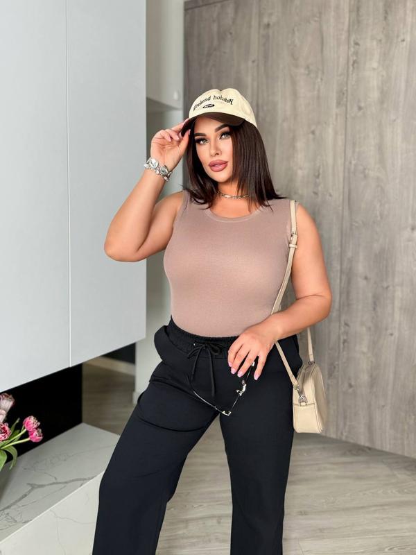 Женская спортивная прогулочная базовая майка в рубчик средней длины широкие бретели норма...
