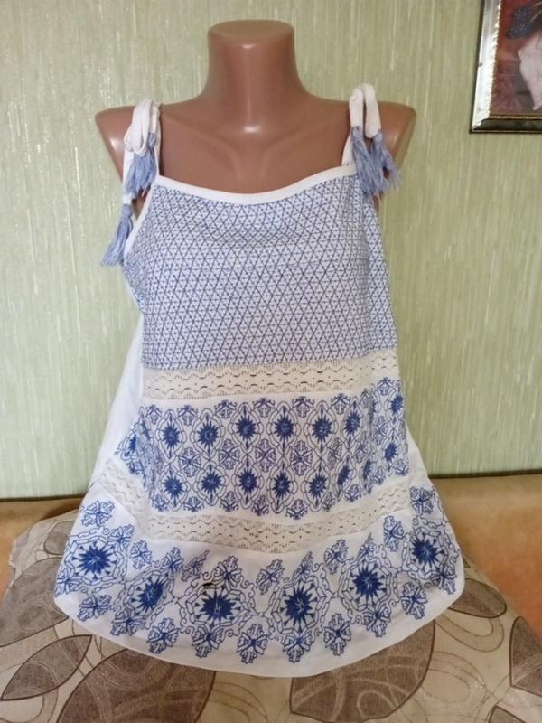 Маечка вышиванка комбинированная с кружевом,цветная гамма в голубых оттенках, батал, замеры: ПОГ 55(60), ПОТ 57, ПО по низу 64, длина изделия 53, регулируется завязками 🌊🌊🌊
