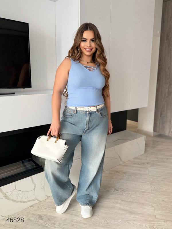 Женская майка в рубчик со шнуровкой большие размеры