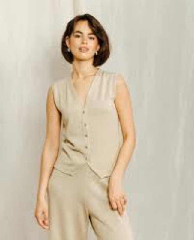ПОГ 46 ДОВЖИНА 62 Плотная, тяжелая, тянущаяся майка на пуговицах бежевого цвета.