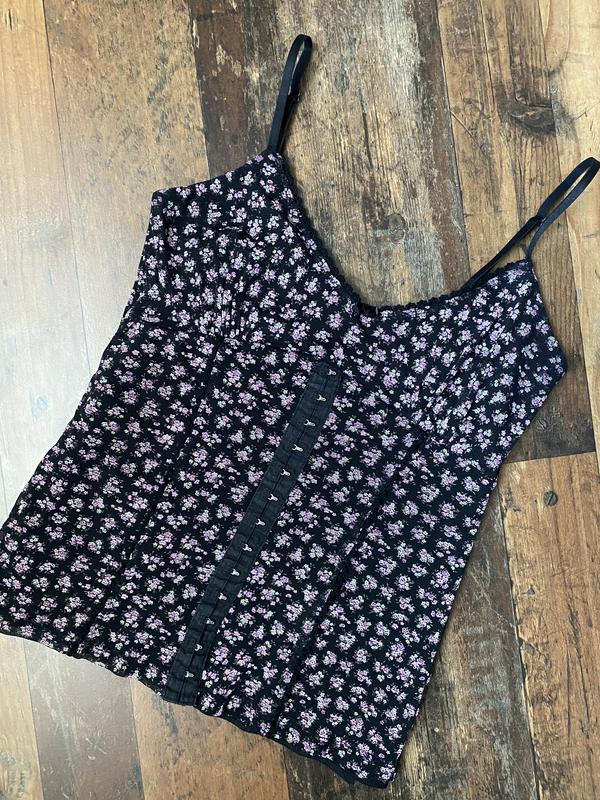 Облегающая винтажная двойная майка топ в цветочный принт сетка корсет крючки y2k