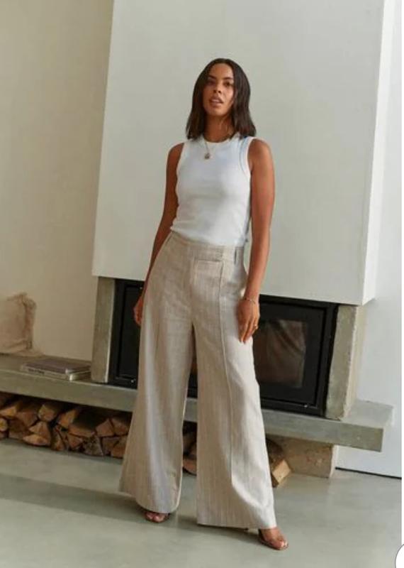 Білосніжна, тканина середньої плотності, не тоненька, дуже класно виглядає! Стан ідеальний! Довжина 59, по бокам трішки коротша, ПОГ 40,5, добре тягнеться