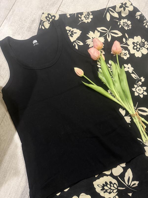 Базова жіноча майка від F&F у ідеальному стані. Тканина м'якенька, натуральна, з еластаном, добре тягнеться. Нова, без паперової етикетки, лише примірялась, не носилась! Заміри: • НО грудей – 39см. • Довжина –61 см.
