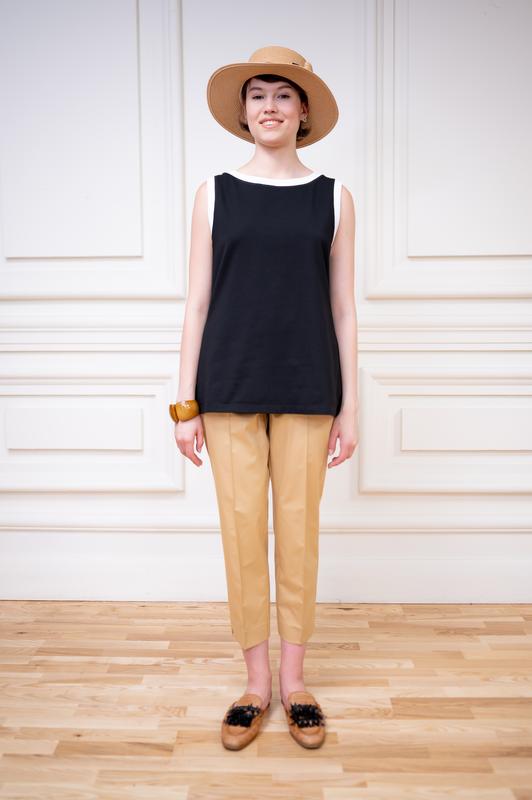 Базовая модель майки на широких бретелях, обрамленной широким кантом отлично подойдет для ваших летних образов
