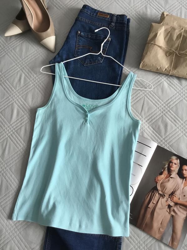 Стильная Майка в бирюзовом цвете Замеры Длина 59 см Бюст 40 см По линии бедра 41 см Плечи 29 см Пройма 24 см Состав 100% хлопок