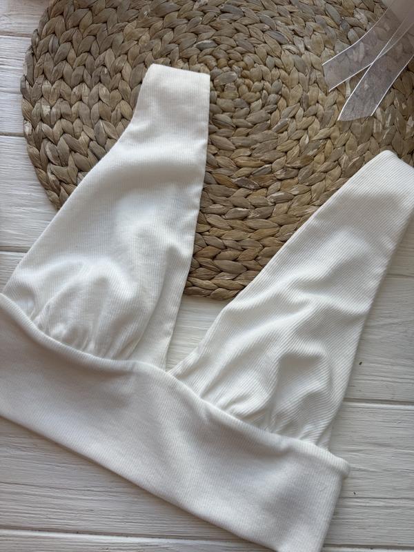 Топ ліф білий на широких брітелях , тканина в рубчик, гарно тягнеться