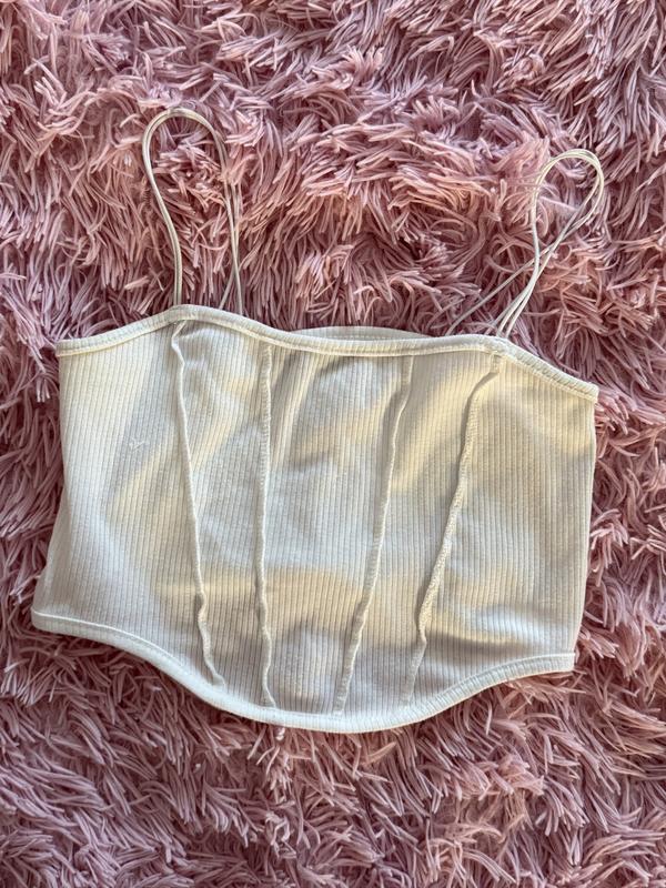 Майка на бретельках у білому кольорі .Написано що розмір L ,але підійде на xs,s