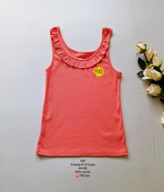 Маечка для дома от F&F. Размер 8-10 (наш 44-46). Состав: 100% коттон. Замеры: длина по спинке 48 см, ПОГ 37 см, ПОТ 37 см, ПОБ 41 см, плечо 5 см, ткань хорошо тянется. Состояние новое с бирками.