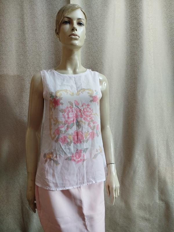 Классная и очень лёгкая майка в отличном состоянии. Длина изделия по спинке от плеча 66 см, полуобхват груди 44 см. Ткань на спине тянется. Модель 6563Ю