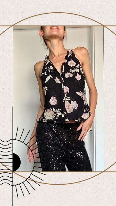 Чорна блуза квіти шифон майка бретелі топ волан рюші класика вільна oldmoney