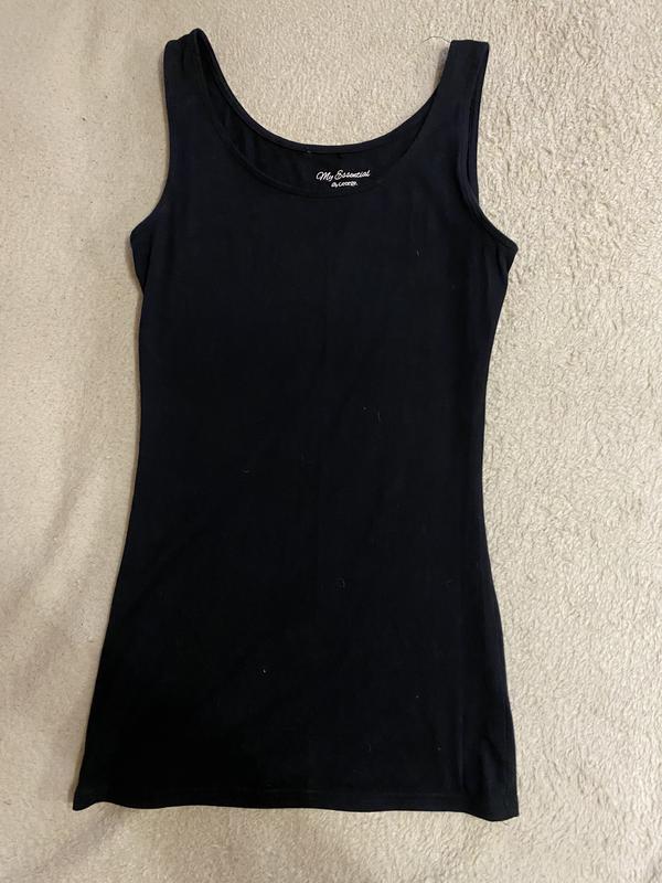 майка трикотажна подовжена бавовняна по фігурі чорна базова My Essential George 8 36 Еластичний трикотаж Котон 95% еластан 5% Ультра чорний насичений Кольор ✅👌 📌Заміри на фото тягнеться ✅