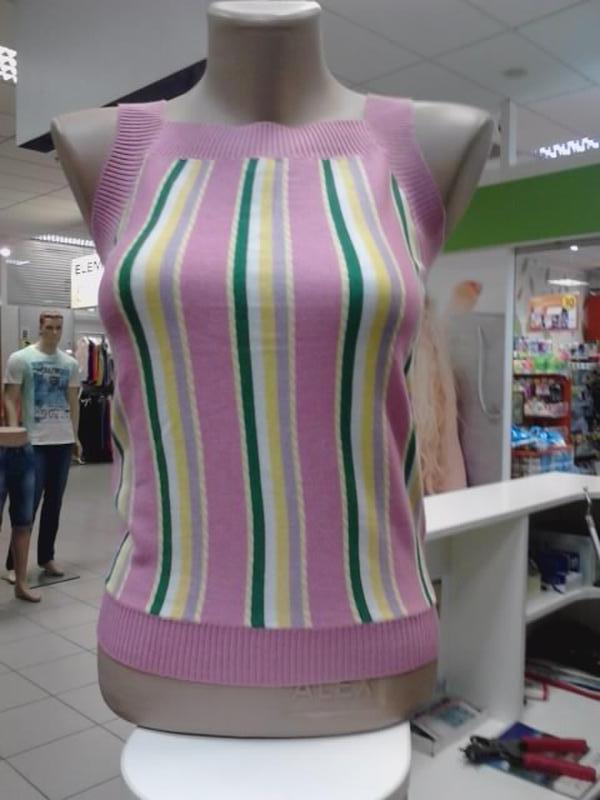 Майка -топ. Тончайшая вязка. НОВАЯ!!! Очень хорошо тянется!!! Р-р S/M. ОЧЕНЬ подходит под новую!!!!, ультрамодную!!! посадку брюк АМЕРИКАНКА! Замеры в спокойном ( лежачем ) положении: плечи -до 43 см пройма - см ширина под проймой - 35-55 см ширина внизу -35-55см длина по спинке-44 см длина спереди -44см Цвет: Разноцветный