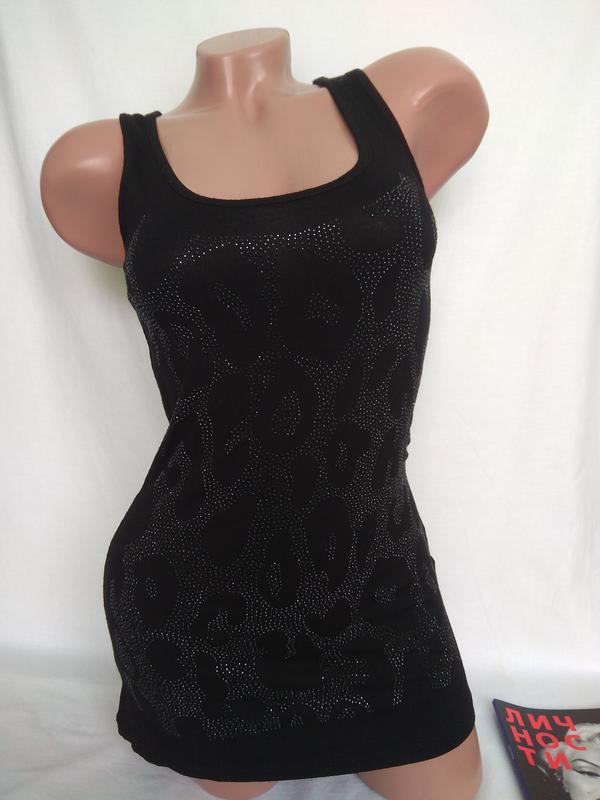 Черная удлиненная майка-борцовка принт из мелких термо-страз, р. s , от clockhouse
