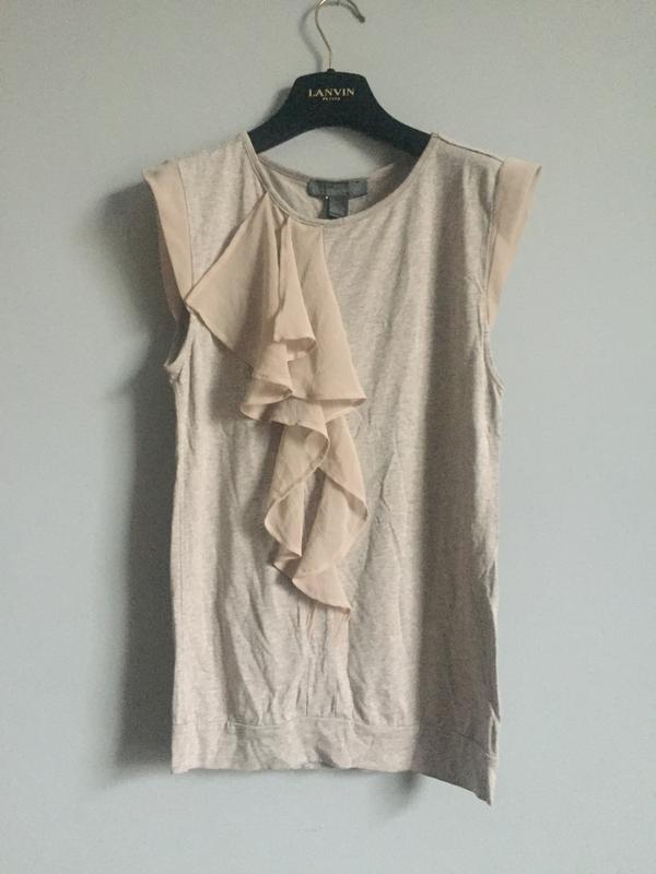 Блуза бежевая с воланами ( рюши из шифона ) mango. Ширина по плечам 39 см, пог 44, ширина по низу 42 см., длина 54 см