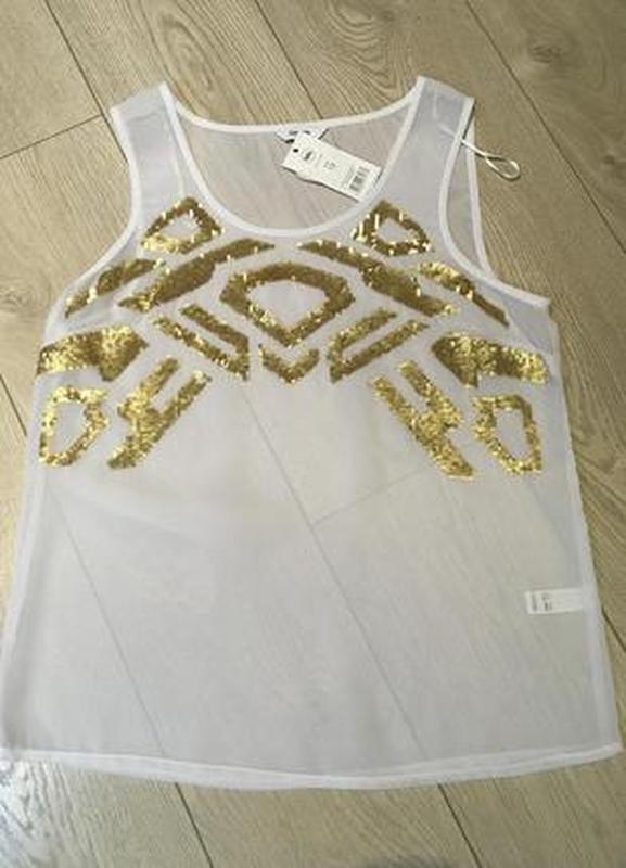 Шифоновая блуза белого цвета с золотыми пайетками George. Размер L. Замеры: ПОГ 48 Ширина низа 52 Плечи 35 Длина по спинке 61,5 Длина по боковому шву 39,5 О цене можно договорится на любые товары
