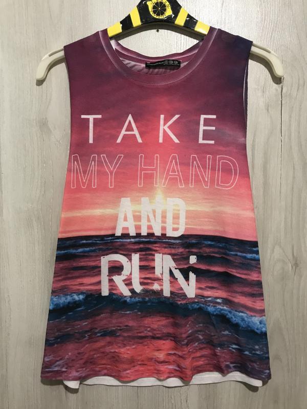 Майка спереди один принт, сзади белая! Длина 61см Пог 48см Идеальное состояние! ☀️с шортиками бомба!☀️ Пересылаю.