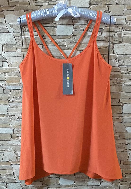 Майка, orange XL, cache cache, Франция для создания летнего образа! Ткань приятна на ощупь, полиэстер устойчив к любым загрязнениям, прочен, долговечен и не деформируется в течение долгого времени. Изделие без нюансов, всё с бирочками, замеры в спокойном состоянии. Благодаря в составе 4% эластана - изделие.тянется, но не теряет формы . Возврата нет. Продаю только по замерам, по городу и на дому для знакомых примерок нет! СРАВНИВАЙТЕ , ПОЖАЛУЙСТА, СВОИ ЗАМЕРЫ С ЗАМЕРАМИ НА ФОТО.