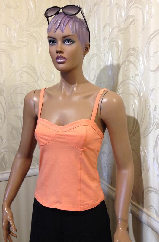 Літній топ на бретелях ніжного оранжевого (персикового) кольору. Бренд PINK WOMAN. Склад: 90% бавовна, 10% еластан. Розмір на бірці L. Підійде і на М. Тканина тягнеться. Розмір манекена S. Дивіться фото. Стан новий, всі бирки в наявності. Ласкаво просимо в мій магазин. Відомі бренди, відмінна якість - доступні ціни.