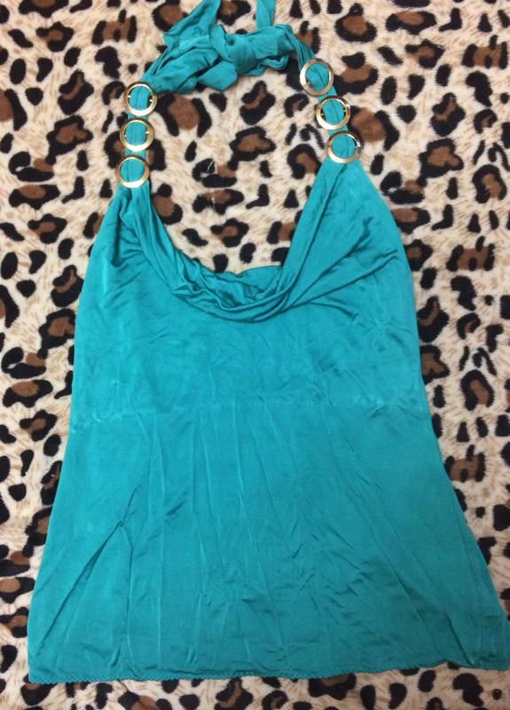 Очень красивая майка, завязывается на шее, спина открыта. Состояние отличное.