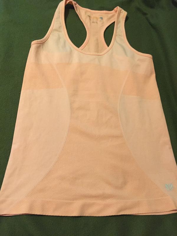 Майка для спорта и отдыха, тянется, ширина груди 37 см , длина от плеча 61 см , состояние очень хорошее, есть два маленьких пятнышка впереди внизу , на фото не видно.