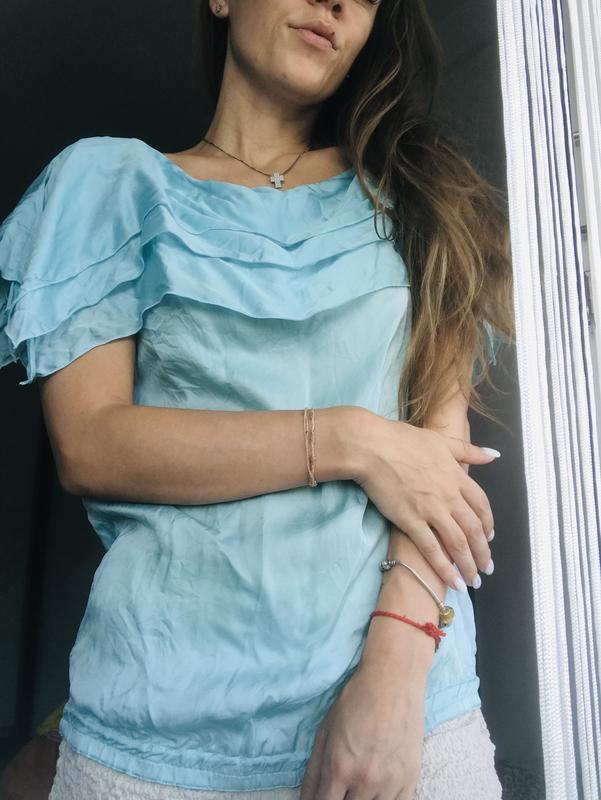 Ткань 100% шелк Легчайшая и нежнейшая Надела несколько раз. Нюанс показан на последних фото, капельку утюгом придержила, небольшая точка бежевая, в носке не заметна!