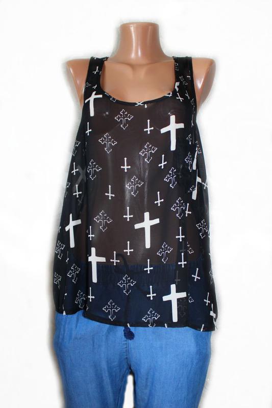 Виглядає як нова. Має накладну функціональну декоративну кишеню. Є два нюанси: 1) малесенька дірочка у нижній правій половині (див. фото №4) - у носці не видно; 2) малопомітні затяжечки матераілу (див. фото №5). ПО грудей 52 см, талії 59 см, стегон 63 см, довжина 61-66 см.