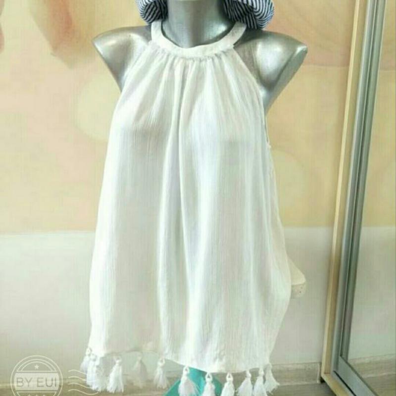 Превосходная майка для лета в белом цвете и с бахромой, которая сейчас в тренде. Отлично сидит на фигуре, свободно, красиво подчёркивая плечи, шею. Ткань лёгкая и приятная к телу,100% вискоза. Размер 12. Длина 60, ПОГ 54. Состояние идеальное . Есть много качественной одежды для всей семьи.