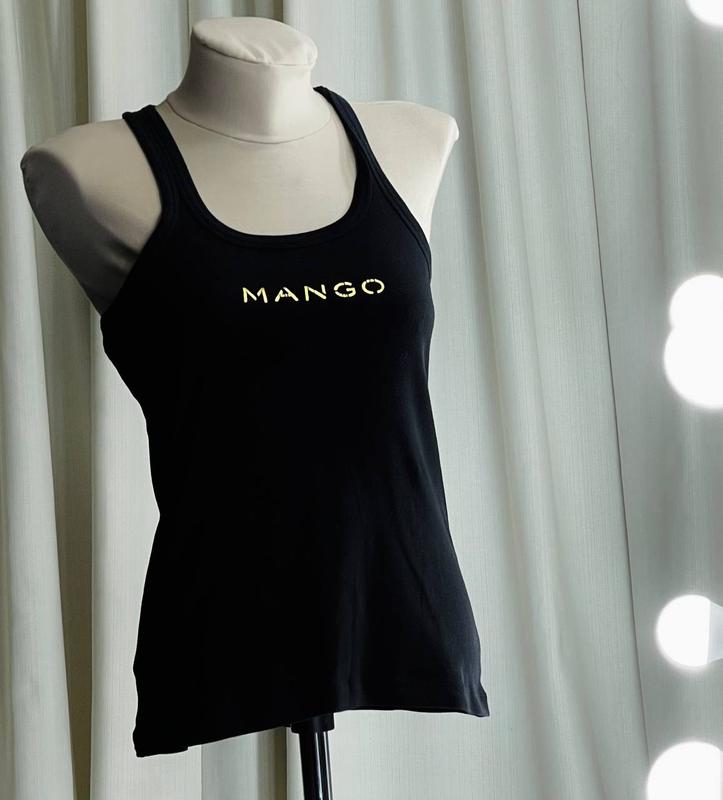 Майка черного цвета с надписью ТМ MANGO ВАSICS🛍❤️🔥😍😍😍 Размер - UK 10/ EUR 38/ MEX 28/ M / 44-46. Состав : 100% коттон . Производство Китай . Майка из хлопка облегающего кроя с надписью на груди золотистого цвета . Глубокие вырезы плеч сзади . Средней длины . Дополнительные замеры : полная длина 60 см , полуобхват груди 42 см ( полный обхват 84 см) и потянется до 110 см, полуобхват талии 40 см ( полный обхват 80 см) и потянется до 100 см, полуобхват бедер 45 см ( полный обхват 90 см) и потянется до 110 см .