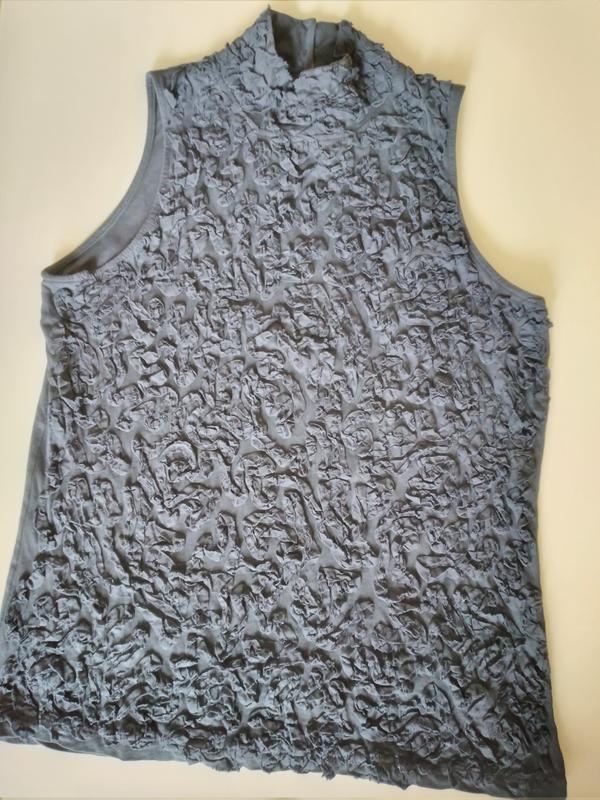 Майка темно-серого цвета, с рельефной отделкой впереди, воротник-стойка, застежка сзади на 3- х пуговицах, хлопок