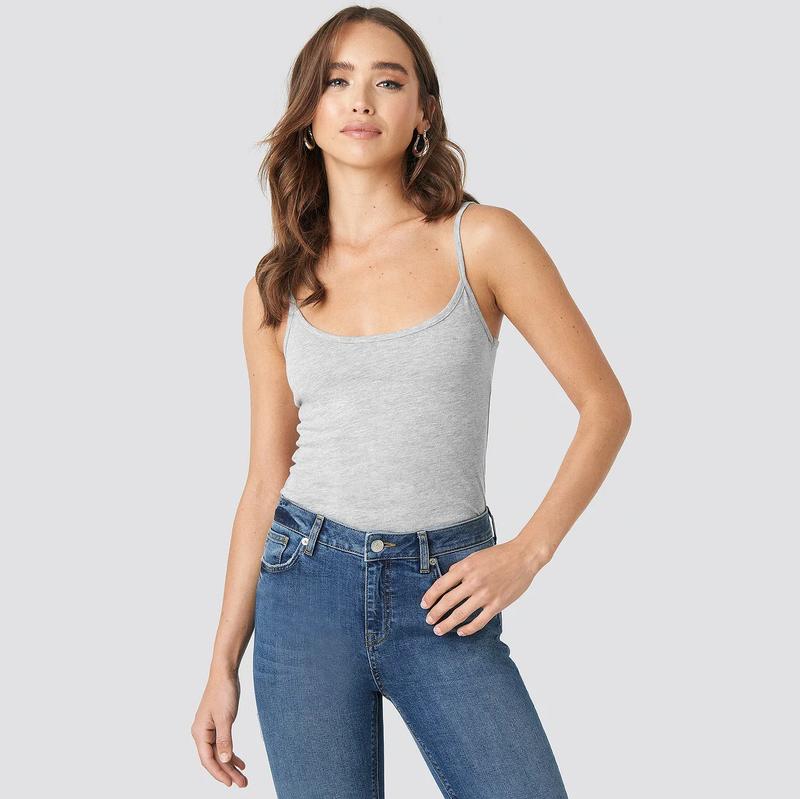 Красивая, качественная майка на тонких бретелях. Ткань очень мягкая и приятная к телу. Цвет: Светло-серый. Состав: 60% хлопок, 40% полиэстер. Размер M длина с бретелями 57 см, ПОГруди 43 см.