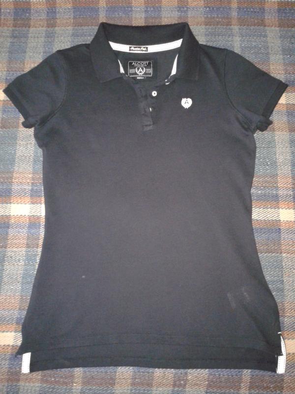 Футболочка в очень хорошем состоянии. Повреждений и загрязнений нет. Внешне смотрится мало ношенной. Никаких белесых следов на черном. Подмышки абсолютно чистые. Состав 95% хлопок, 5% эластан. Трикотаж не плотный, тоньше, чем на традиционных поло. От вспышки даже просвечивается бирочка. Цвет черный глубокий. Футболочка практически прямая. перед чуток короче. по бокам маленькие разрезики с отделочкой из хлопковой ленты. Такая же лента на отделке горловины. Рукавчик коротенький с манжетиком. Ворот на трех пуговичках. Отлично и с джинсами и с шортами. Замеры: - длина по спинке - 57 см, перед короче, - плечи - 33,5-34 см, - от подмышек - 43-43,5 см, - по низу (по началу разрезов) - 43,5 см, - рукав - 14 см. Замеры в разложенном не растянутом состоянии.