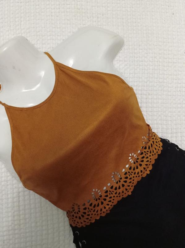 Топ на завязках, низ кружевом, спинка открытая, ткань тонкая под замшу В идеальном состоянии Размер указанного М