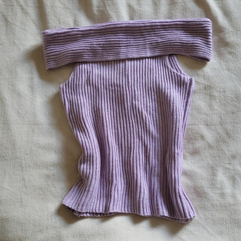 Вязаный топ-топ с открытыми плечами машинная вязка, пряжа высокого качества ручная работа Размер С-М Цвет нежно сиреневый Новый, без бирки