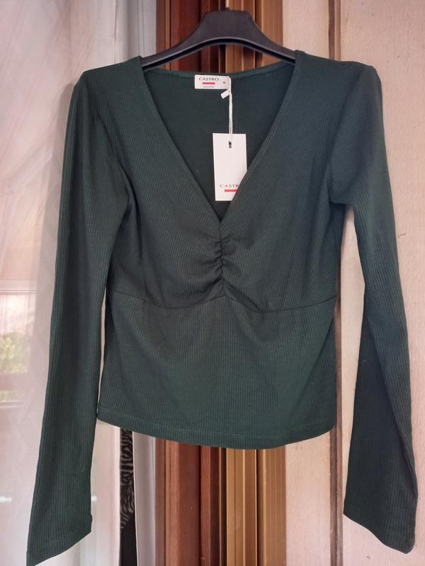 Состояние: новый, с биркой Размер М Длина по спине: 49см. ПОГ: 40см + ткань хорошо растягивается Рукава от шеи: 68см. Цвет: темно зеленый