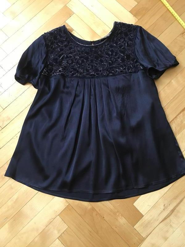 Спинка ширина под руками 44 см, низ 65 см, плечи 38 см, плечо 9 см, длина от плеча 60 см, пройма 19 см. Шелк качественный, плотный. Состав на фото. Состояние хорошее, дефекты на трех последних фото, они незаметны, дырочку видны только на просвет. Цвет как на первых фото.