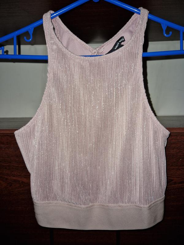 Пудровый с серебристым блеском топ, в размере S. Длина 40 Пог 35 Отправлю безопасной доставкой при условии полной оплаты на ШАФУ новой по почте, доставка Укрпочтой по полной подписке на карту.