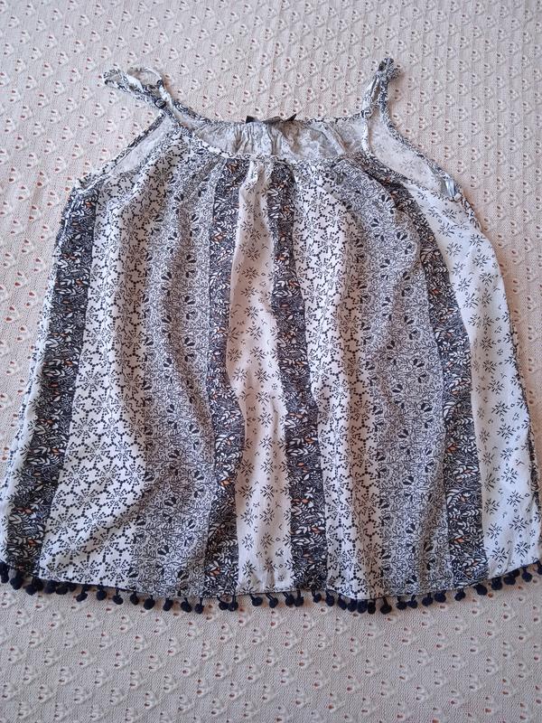 Легкий топ известного британского бренда Primark на лето в отличном состоянии. Свободный крой, тоненькая ткань, не тянется. Нежный узор. Длина брителей регулируется. Размер указан 10 европейский 38. Качество очень хорошее! Длина по спинке без брителей 48, ширина в груди 47 см. Смотрите также другие Мои объявления, есть хорошие вещи для детей и взрослых.