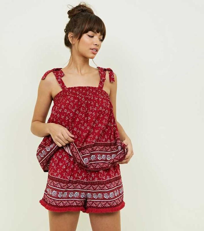 Стильный топ на бретелях в виде завязок от бренда New Look. Изготовлено из легкой 100% вискозной ткани темно-красного цвета с мелким цветочным принтом и бордюром по нижней части. Мягкая вискозная ткань позволяет телу «дышать» и очень приятная к телу. Бретели (завязки) зафиксированы и не регулируются. Указан размер 38/10 (M). Замеры: Ширина по верху (там, гда резинки) 33-34 см (тянется до 50 см) В груди свободно (примерно 60 см) Длина от плеча до низа 56 см Рост Larissa (девушка на фото) 176.5см, носит UK 10/EU 38/US 6. Состав: 100% вискоза. Состояние новой вещи.