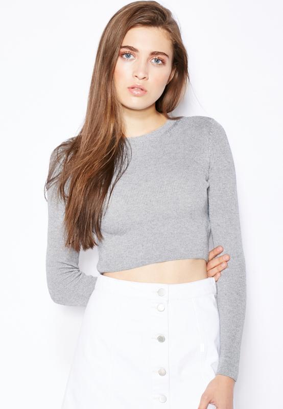 Серый кроп топ короткий джемпер в рубчик с длинными рукавами шерстью теплый кофта