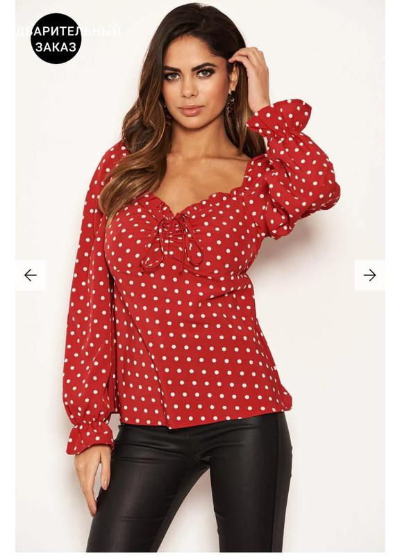 красивый топ с длинным рукавом в горошек, по спинке резинка