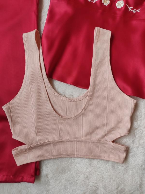 Розовый пудровый кроп топ с разрезами на талии по бокам короткая майка в рубчик топ стрейч