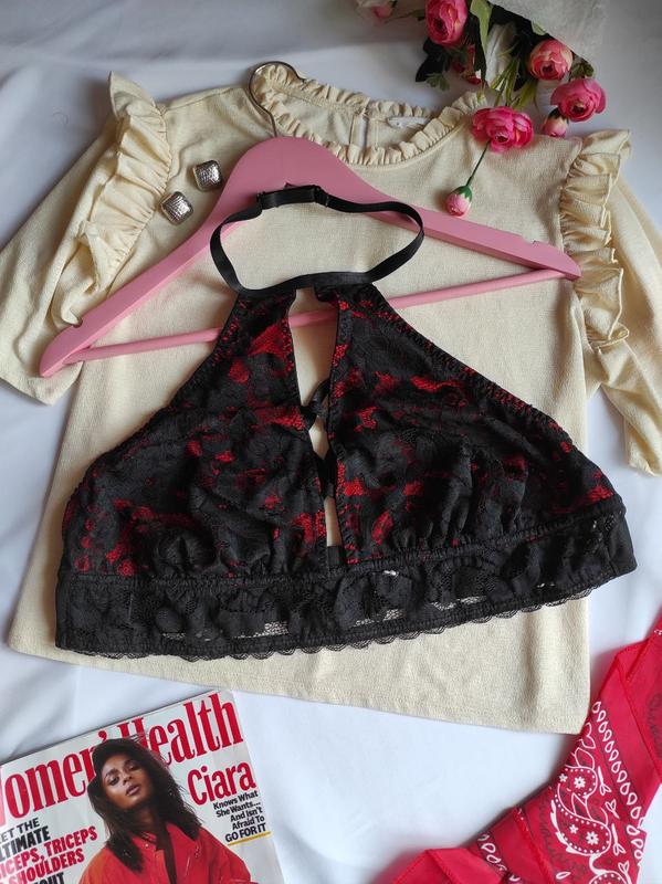 Сетевой лиф топ черно-красный с открытой спиной, мягкая чашка, бретель через шею Стан - идеальный Размер XL-XXL (чашка DD, E)