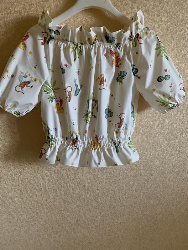 Размер по бирке М ( фото 9,10) Замеры: длина от резинки сверху - 40, ПОГ - 46, рукав - 27 см. Низ присобран на резинке. Плотный высшего качества с хрустинкой хлопок. Состояние абсолютно новой вещи ( фото 10). Состав: 100% cotton.