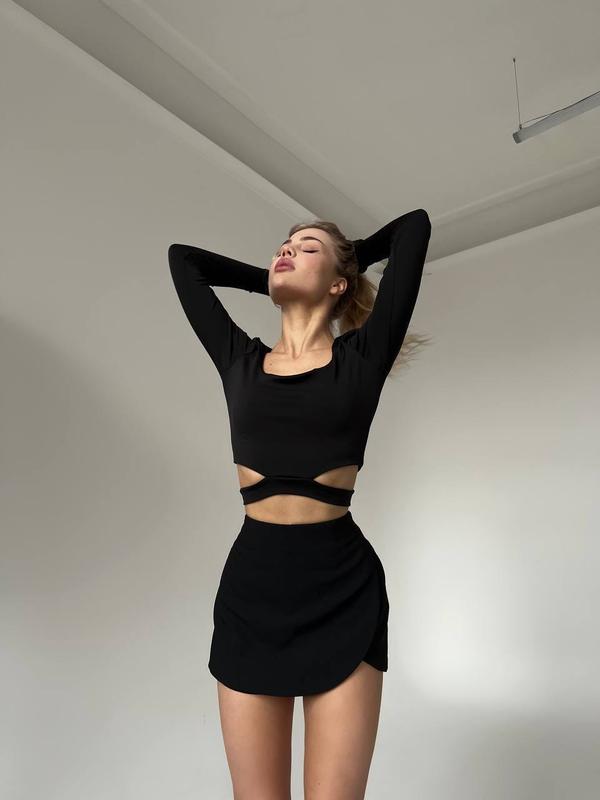 Цвет: белый и черный Размер: 42-44, 46-48 Материал: микро-дайвинг Фото реал Топ полностью двойной не светится, на рукавах метки