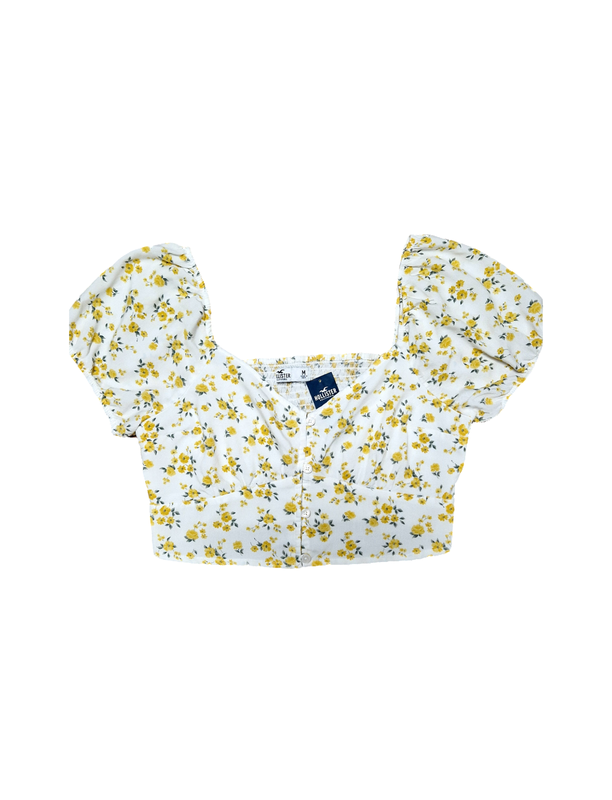 Кроп топ hollister размер м хлопковый приталенный с рукавами фонариками принт цветочный