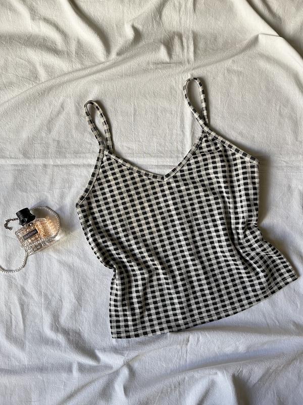 Стильный топ в клетку от topshop. 41% бавовна. Материал очень хорошо тянется. Размер идет на хс-с. Состояние отлично 🔥