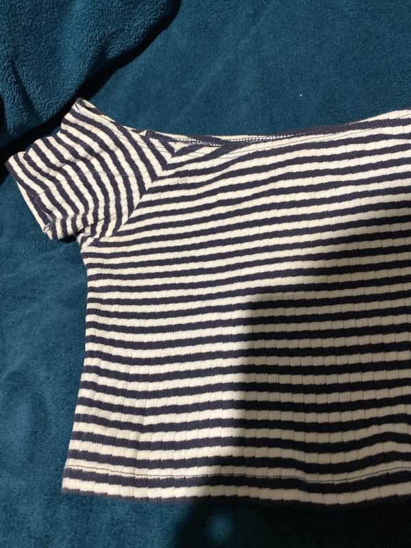 Полоска синяя и белая Тянется Плечи открытые Длина 26,5 П/о груди 37,5