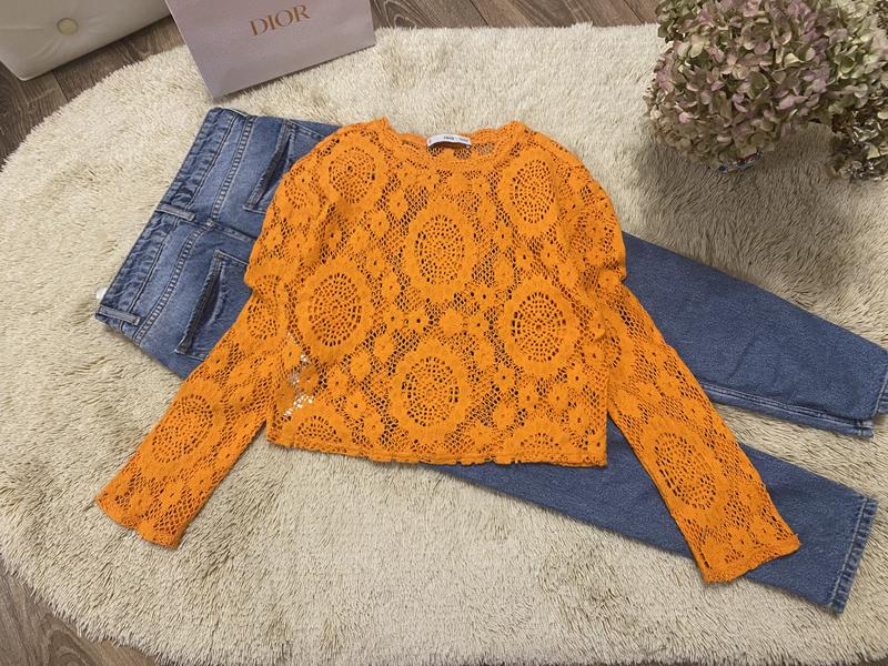 Ажурна кофточка розмір XS, у складі котон, довжина 44см., півобхват грудей 43см., довжина рукава від горловини 65см. Стан ідеальний.